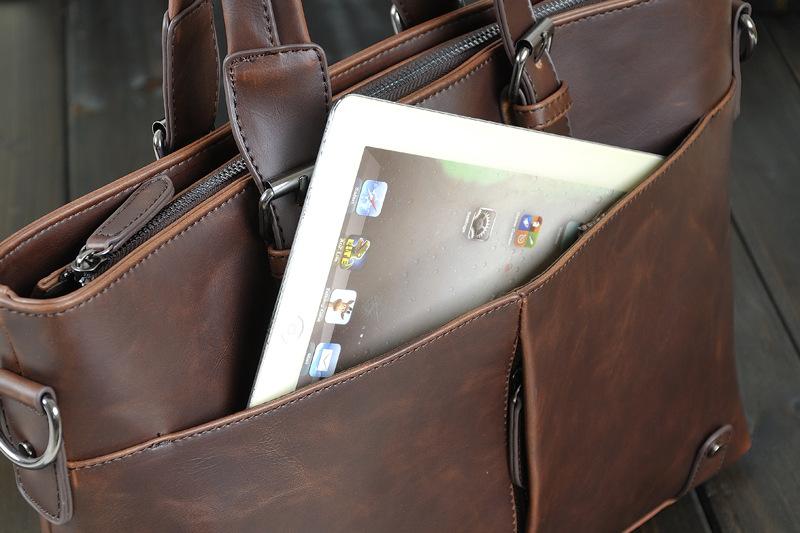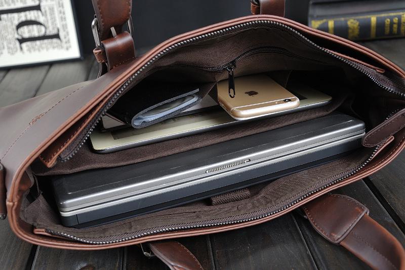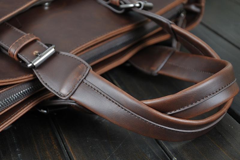 Take your professional image to the next level with this business leather bag. Features like a single top handle, interior compartments, and slot pockets for organization make it easy to create an efficient and polished look. Hang your keys on the key chain holder, and keep your smartphone close with a cell phone pocket. With its chic grey hue, this bag is sure to blend in seamlessly with any outfit.