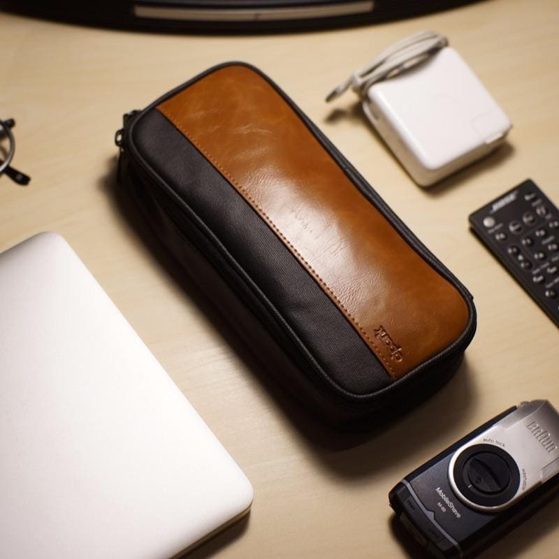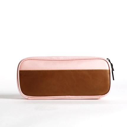 This PU leather and canvas storage and accessory bag comes in black, rose and pink. It has a zippered main compartment and a laptop replace cover. The bag is easy to clean and the turnlock design makes it easy to use.