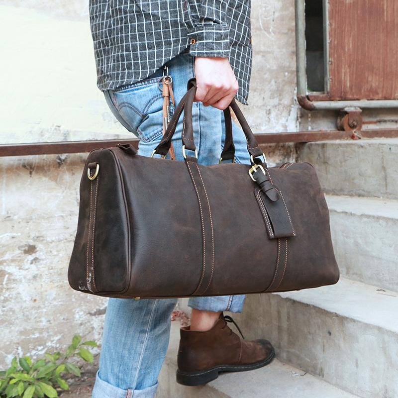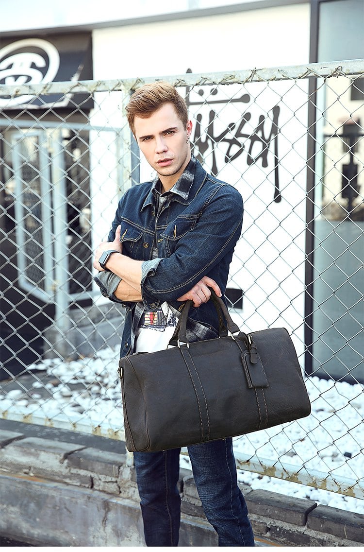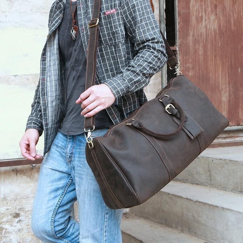 This Genuine Leather Travel Bag has compact size as it's in vintage style. The convenient combination of a small bag and large capacity, it contains patterns and styles with different colors to choose. It can be used as a travel bag, duffle bag, back pack etc. It comes with high quality and delicate workmanship, which is soft solid material for you to feel comfortable while touching. It is a good assistant for your travel and leisure life, adding much fashion taste to your daily life.